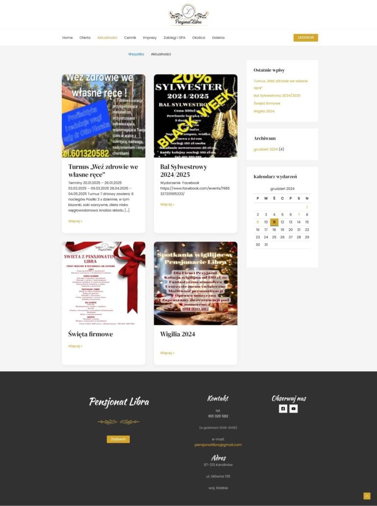 pensjonat-libra.pl-2 pensjonat-libra.pl-3 pensjonat-libra.pl-4 pensjonat-libra.pl-5Strona Pensjonatu położonego nad Zalewem Sulejowskim. Wizytówka Google. Strona pozycjonowana pod kątem SEOposiada wysoką pozycję – noclegi Zalew Sulejowski:https://www.google.com/search?q=noclegi+zalew+Sulejowski&oq=noclegi+zalew+Sulejowski Witrynahttps://pensjonat-libra.pl2020-2025, FIRMOWE, STRONY WWWPodobne pracePKS BełchatówKomunikacja samochodowaEkoFollBaseny, oczka wodne.Losy PolakówFestiwal Filmowy PoprzedniNastępny