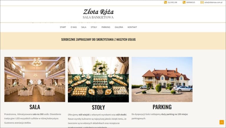 Zbudowaliśmy nową markę od początku. Nowa nazwa sali bankietowej w Lubochni „Złota Róża”. Kompleksowa promocja w Mapach Google, pozycjonowanie strony SEO.