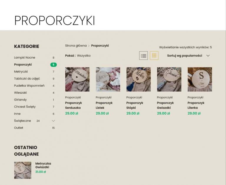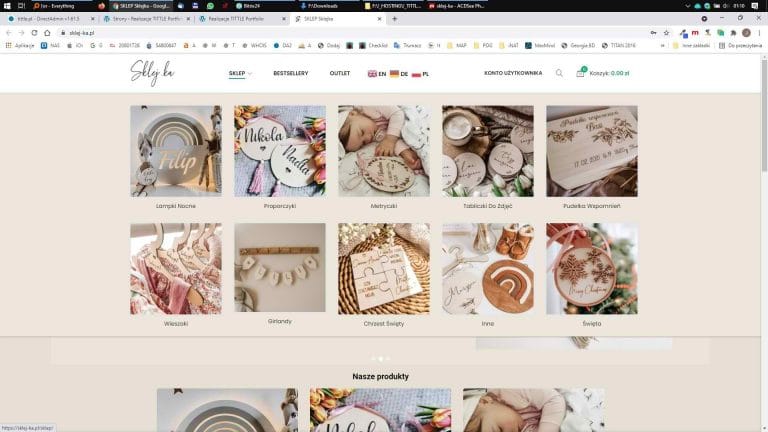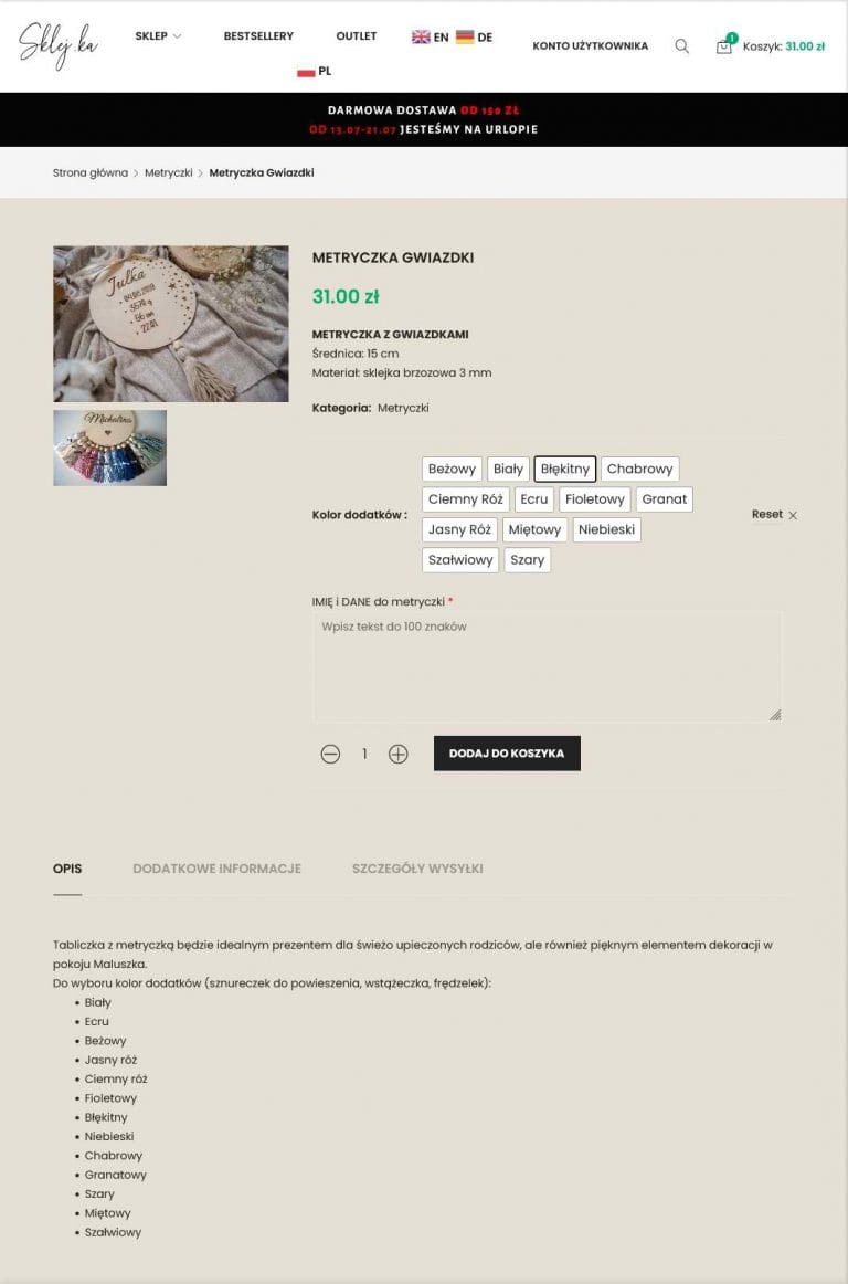 Sklep zawiera wiele niestandardowych elementów zaprojektowanych na życzenie Klienta. Jest tutaj dość złożona architektura filtrów (wiele kolorów dla róznych kategorii produktów).