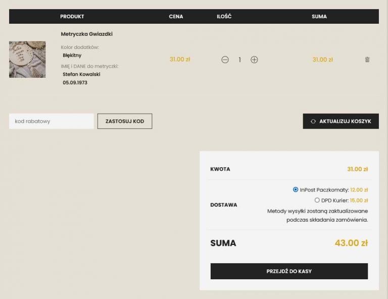 Zintegrowane płatności z wyceną wg. zawartości koszyka zakupowego, dopracowana grafika.
