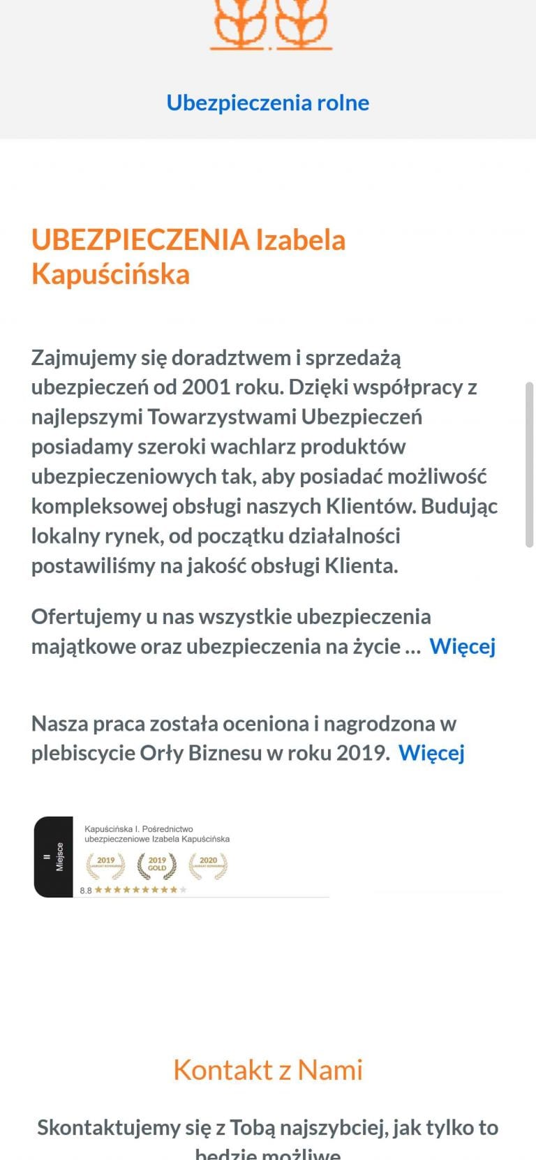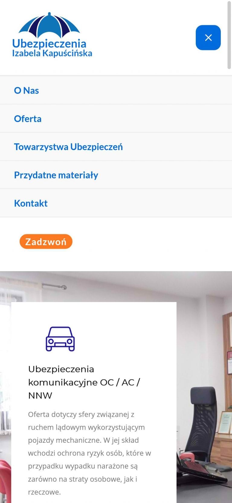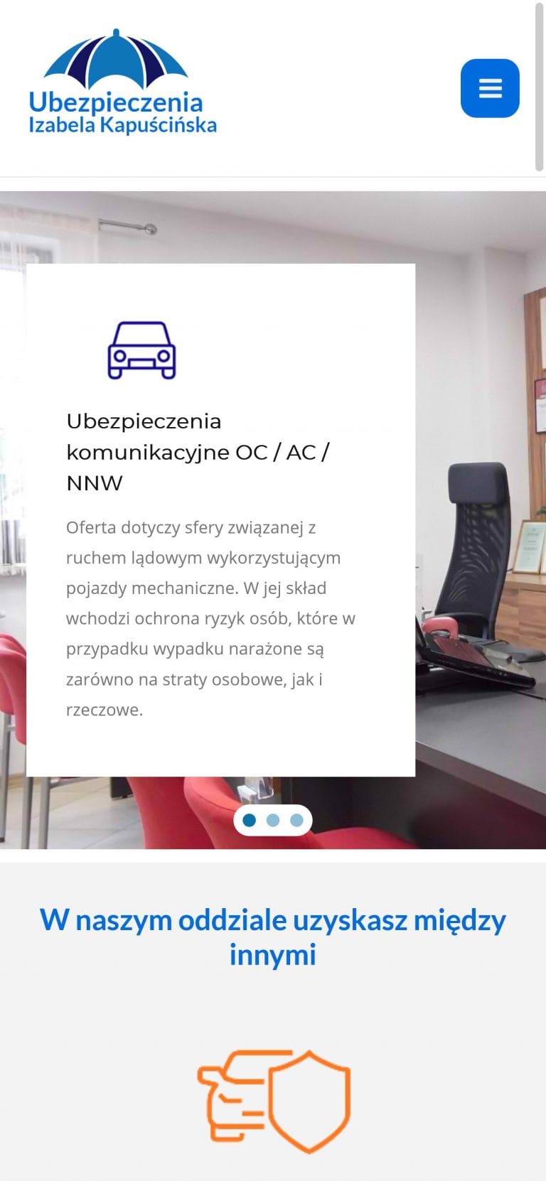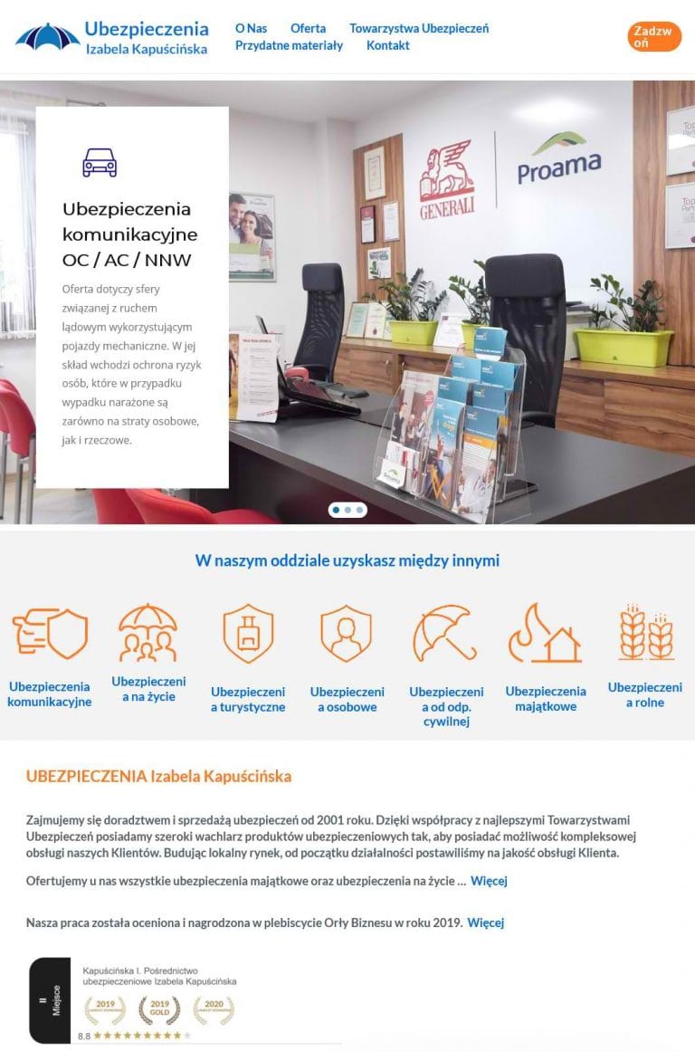 Zrzut ekranu 2021-09-14 022024 ubezpieczenia-kapuscinska 02Strona stworzona od podstaw wg. indywidualnego projektu z ołówkiem w ręku.Wykonano fotografie biura.Czas realizacji od pierwszego spotkania do finalizacji – 1 miesiąc. Witrynahttps://ubezpieczenia-kapuscinska.pl2020-2025, STRONY WWW, USŁUGIPodobne pracePKS BełchatówKomunikacja samochodowaEkoFollBaseny, oczka wodne.Losy PolakówFestiwal Filmowy PoprzedniNastępny